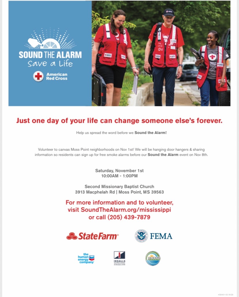 This campaign is made possible through collaboration between the American Red Cross, Moss Point Fire Department, State Farm, FEMA, Ingalls Shipbuilding, Chevron, and the City of Moss Point.